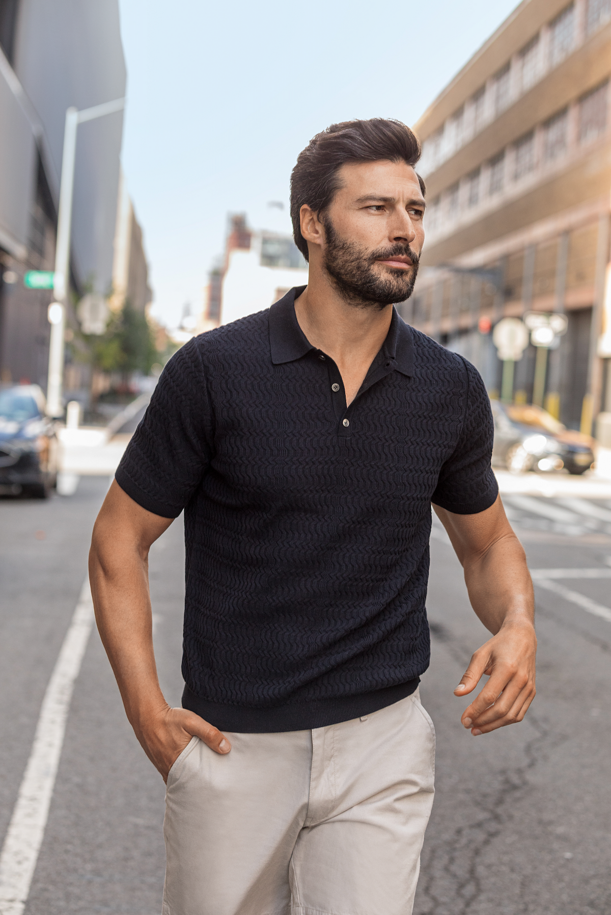 Brooklyn Mixed Weave Stripe Sweater Polo